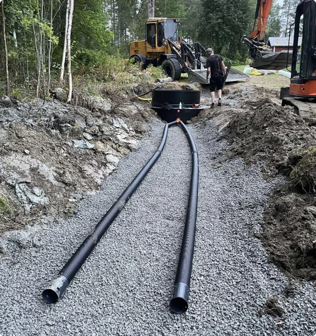 Att gräva för en pool eller installera ett nytt avloppssystem kräver precision för att inte skada befintliga ledningar eller omgivningen. Vi planerar varje moment noggrant och utför arbetet effektivt, oavsett om det handlar om stora volymer schaktmassor eller precisionsarbete på en trång tomt. När du anlitar oss får du en partner som tar helhetsansvar för grävarbetet, från första skoptaget tills marken är redo för installation eller gjutning.